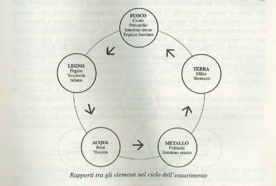 I cinque elementi (Fuoco,Terra,Metallo,Acqua,Legno) non esistono isolati l’uno dall’altro, ma s’influenzano a vicenda in svariati modi. E’ proprio quest’intreccio d’interazioni che dà luogo ad un equilibrio fluido e vitale che permette una relativa stabilità a livello energetico e non. (Fig.1)